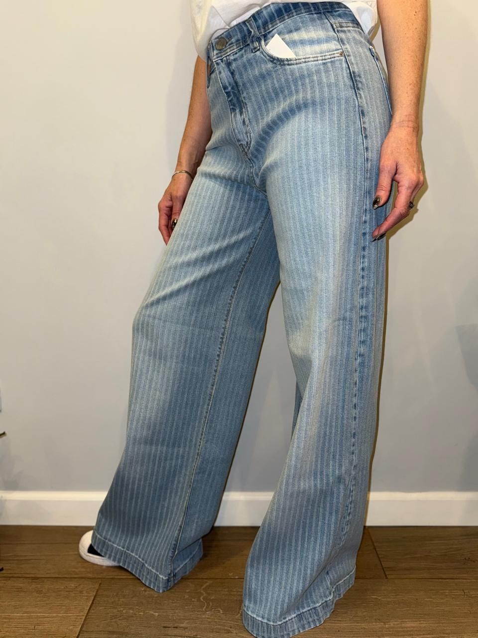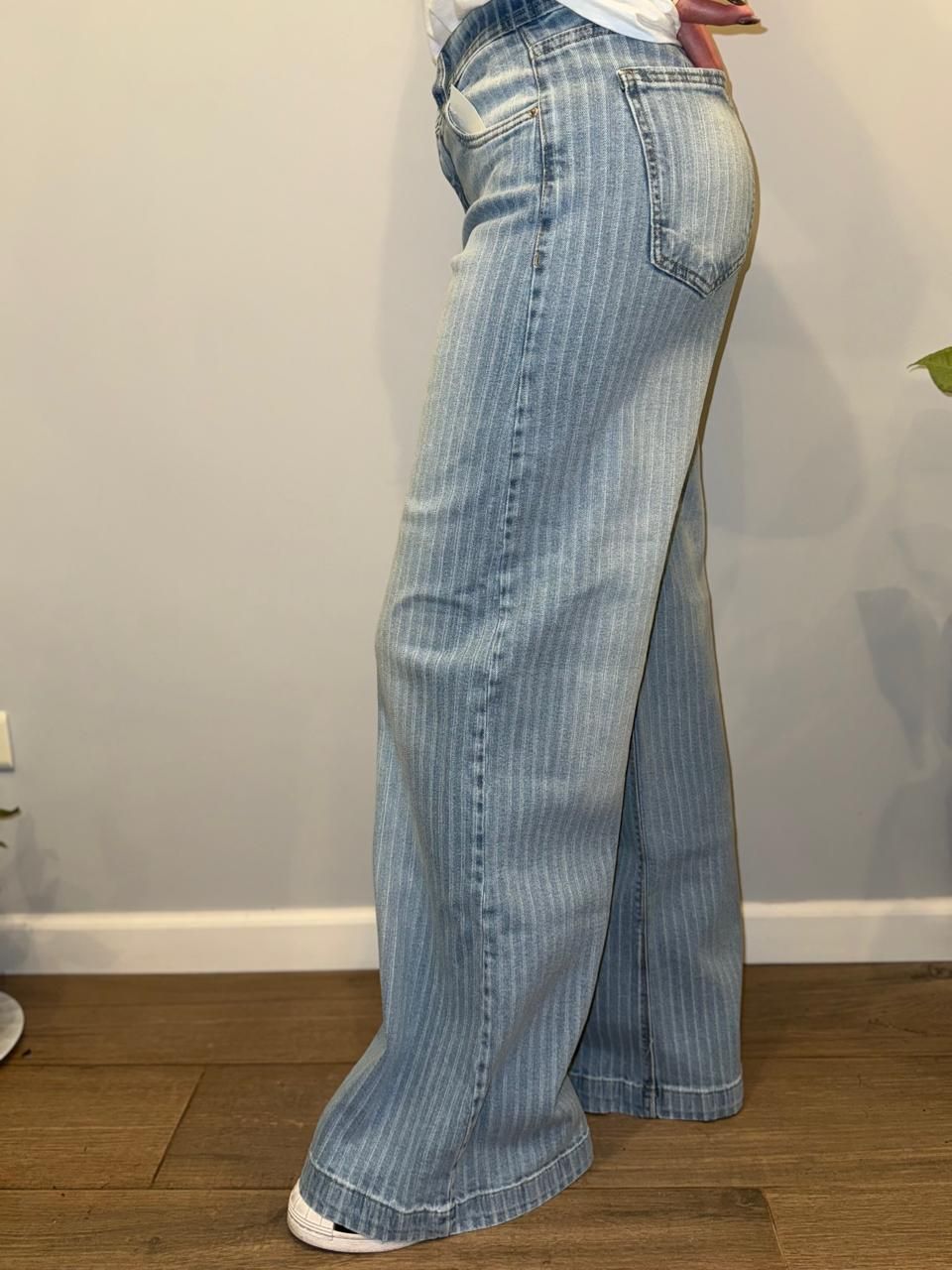 Pantalón rayado de Jean talle 36 al 48 wide leg semielastizado